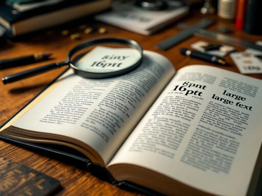 De ideale lettergrootte wordt bepaald door vier hoofdfactoren: je doelgroep, het boekgenre, het papierformaat en de gewenste leesbaarheid. De doelgroep is de belangrijkste factor, omdat verschillende leeftijdsgroepen andere behoeften hebben.